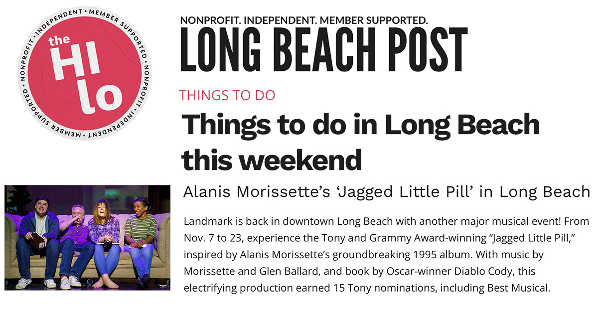 Jagged Little Pill is featured in the Long Beach Posts’ “Things to do this weekend in Long Beach” feature.